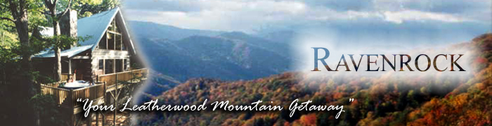 Ravenrock is uniquely built with gray hand-hewn hemlock logs and old fashioned chinking. The house is topped off with a blue metal roof that reminds us of the Carolina blue sky. Large windows and vaulted ceiling create a spacious interior living space that brings the lush mountain view inside. The living area is finished with hand-planed hemlock logs and Australian cypress hardwood floors. Prepare a gourmet meal in the well-equipped kitchen complete with gas cook-top and double ovens. The kitchen is decorated with Silestone countertops, stainless steel appliances and natural pine cabinets. Up the wormy maple stairs, indulge yourself in the luxurious master suite with vaulted ceiling and a two-person Jacuzzi whirlpool tub. (Master suite also has a shower.) All three Ravenrock bedrooms as well as the loft with its futon are equipped with ceiling fans. The house has a full bath on each of its three levels. The main floor has a standard shower tub and the lower level bathroom has a two-seat shower. The wraparound front porch and deck give a rocking chair view of Chestnut Mountain and the Raven Rocks for which the home is named. The porch is equipped with ceiling fans to enhance the natural mountain breeze. The separate hot tub deck also affords a wonderful mountain view, yet is very secluded and private. On the lower level beside a beautiful rock wall is a porch swing ideal for snuggling while watching the sun settle below the mountains. For a family getaway or a romantic retreat, Ravenrock is a beautiful choice. You can always hope for a rainy night so the metal roof can lull you to sleep. |